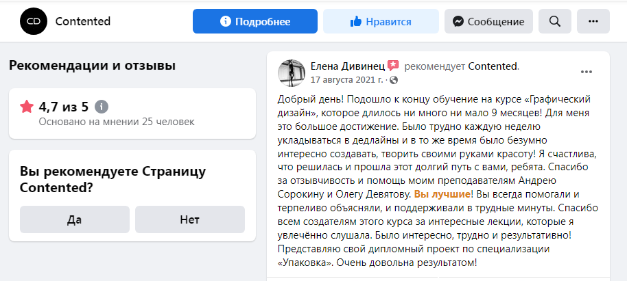 Отзыв о курсах графического дизайна в онлайн-школе Contented