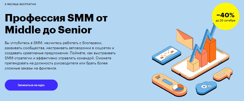 Тем не менее предлагаю несколько вариантов курсов по специальности, которые помогут вам освоить профессию SMM-менеджера: