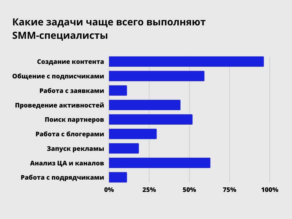 Основные обязанности любого специалиста по работе с соцсетями – это создание контента (посты и сторис) для бизнес-страниц и настройка таргета. Набор дополнительных функций зависит от конкретного проекта.