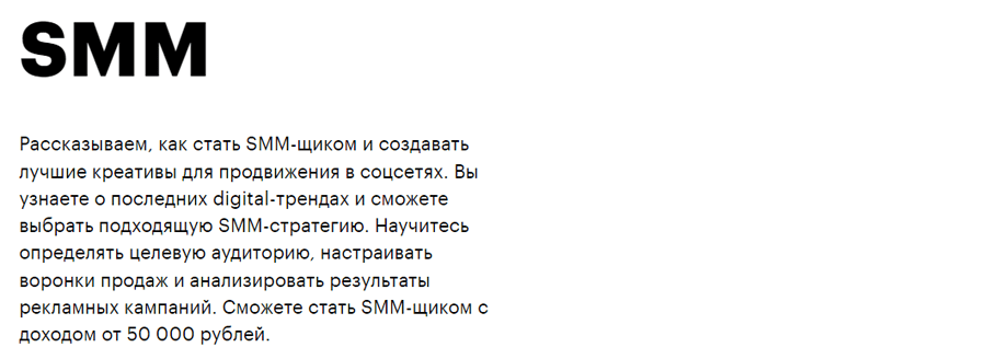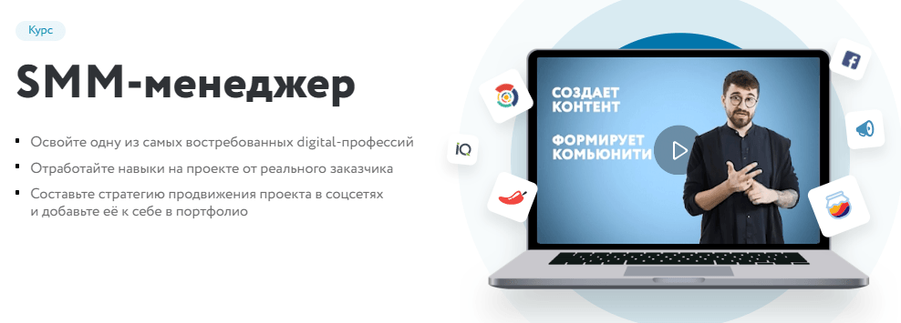 Описание. Начните с этой программы, если пока вообще не имеете представления о SMM. Преподаватели расскажут вам, какие основные направления существуют в специальности, как обычно проходит день SMM-щика и на какие доходы можно выйти.