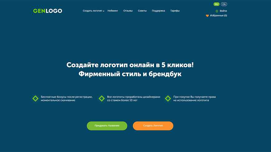 Genlogo – следующий в списке наиболее эффективных ресурсов для создания лого. Сервис имеет очень простой интерфейс, позволяющий создать логотип онлайн всего в 5 кликов! Главными преимуществами являются: уникальная база знаков (собственные разработки сервиса), шрифты и цвета подобраны профессиональными дизайнерами специально для выбранного логотипа, что избавляет вас от головной боли по выбору цвета и шрифта самостоятельно.