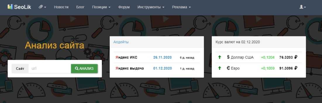 С помощью данного сервиса проверка seo оптимизации сайта производится быстро и бесплатно. Он отличается интуитивно понятным интерфейсом, привлекательным дизайном, благодаря чему пользователи могут легко сориентироваться в принципах работы с ним. Seolik демонстрирует главные показатели ресурса, которые понадобятся для его продвижения в Яндекс и Google.