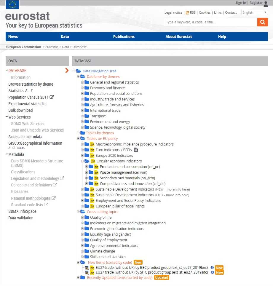 - the Data Bulletin section with the latest releases of new datasets and updates of existing sources.