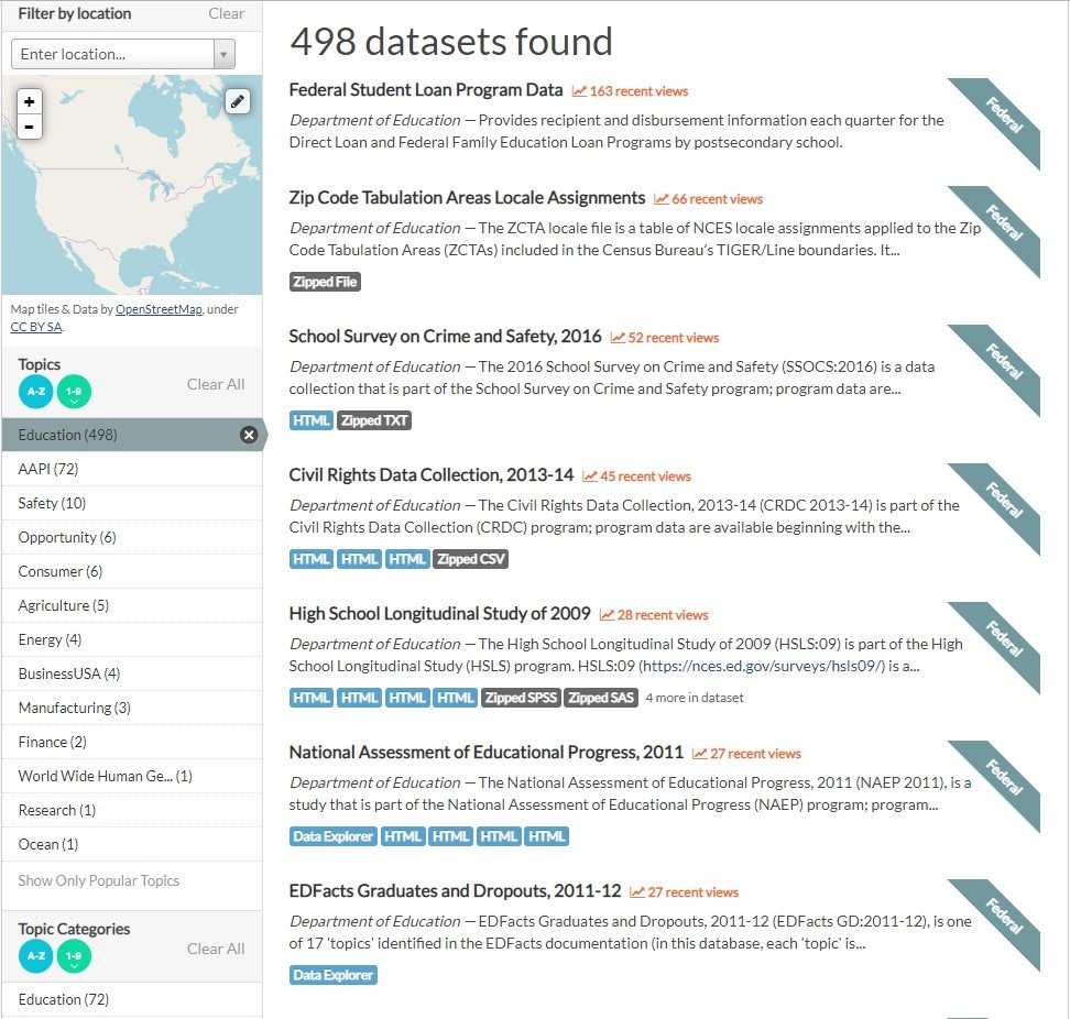 2. Aggregate datasets from various providers. This allows users to find health, population, energy, education, and many more datasets from open providers in one place – convenient.