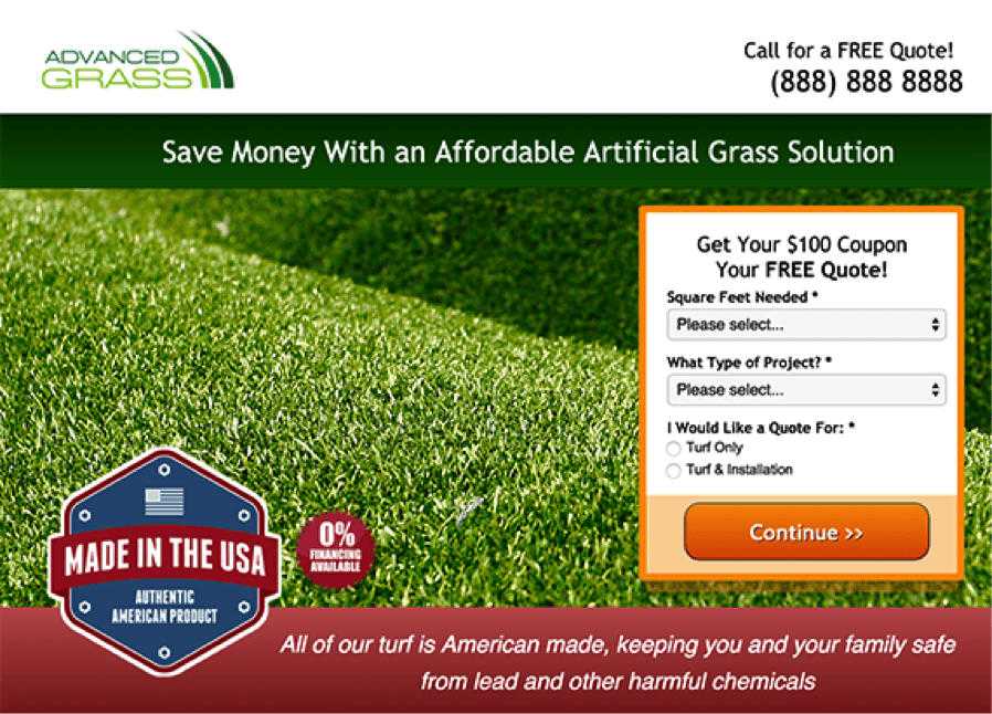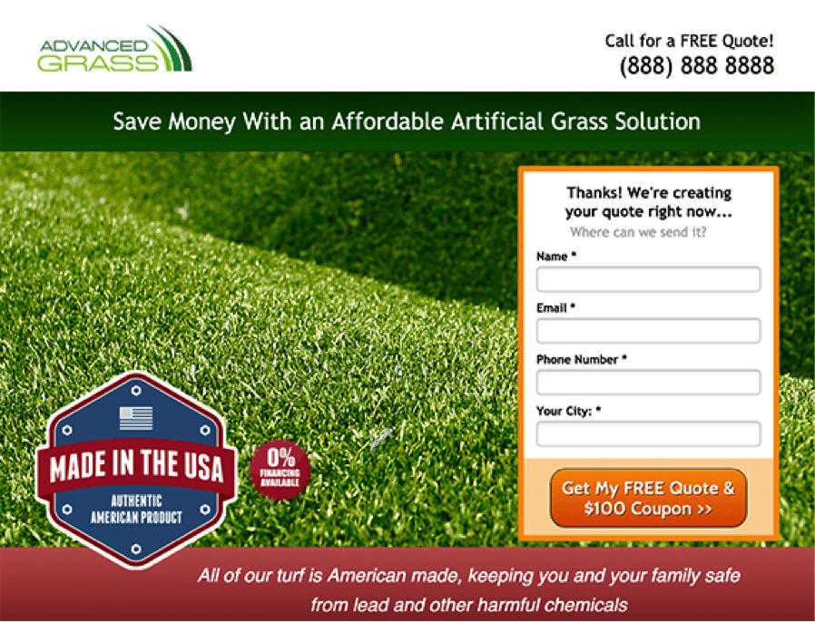 Advanced Grass ー марка искусственной травы. Они смогли увеличить конверсию на 214%, разделив длинную форму подписки на две части: контактную информацию и уточнения.