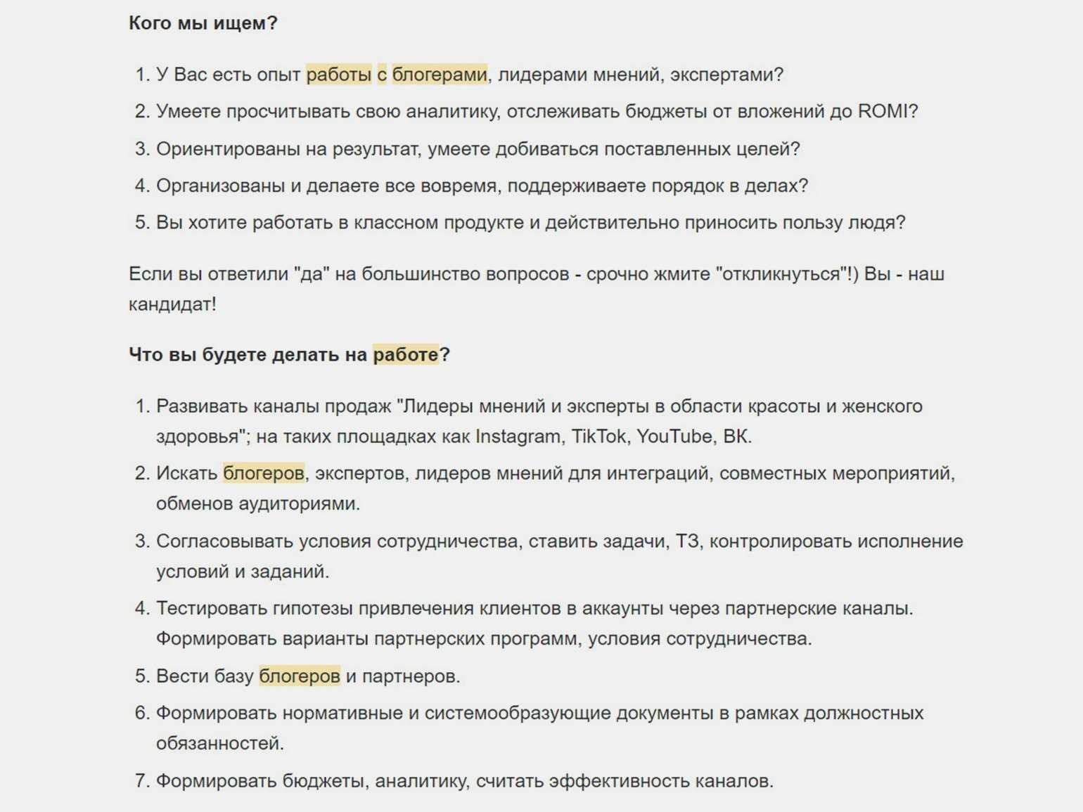 Где искать работу? На агрегаторах вакансий и сайтах агентств, которые работают с инфлюенс-маркетингом. Ещё можно найти вакансии на биржах блогеров — платформах, на которых размещают информацию об инфлюенсерах.