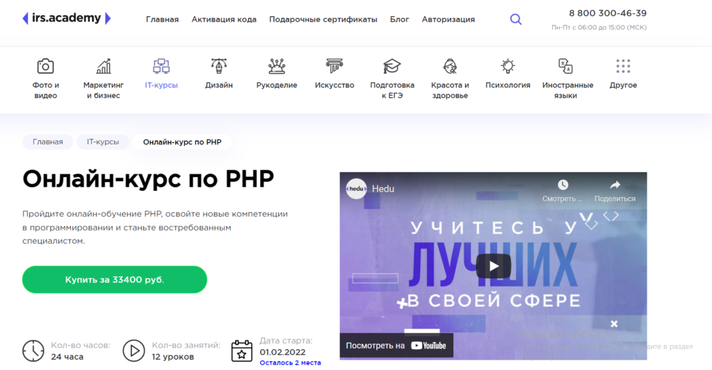 Еще одним хорошим вариантом для освоения PHP разработки является курс «PHP: От новичка до профессионала» от Skillbox
