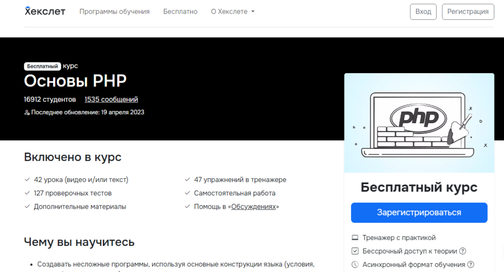 Курс «PHP для опытных разработчиков» является одним из лучших онлайн-курсов по разработке на PHP для опытных программистов. Он предлагает углубленное изучение языка PHP и его продвинутых концепций.