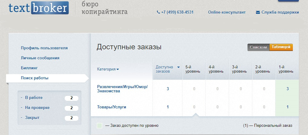 Этот международный сервис копирайтинга активен во многих европейских странах. Задания разделены на пять уровней сложности, и оплата зависит от уровня фрилансера, начиная от 100 рублей за 1000 символов. Textbroker взимает комиссию в 20% и требует активной работы от своих фрилансеров. Платформа лучше всего подходит для опытных копирайтеров с существующим портфолио и активностью на других площадках.