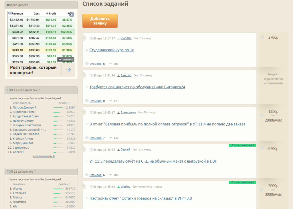 Эта биржа предлагает задания преимущественно в IT-сфере: создание сайтов, их дизайн и продвижение. В основном на бирже регистрируются программисты и веб-разработчики.