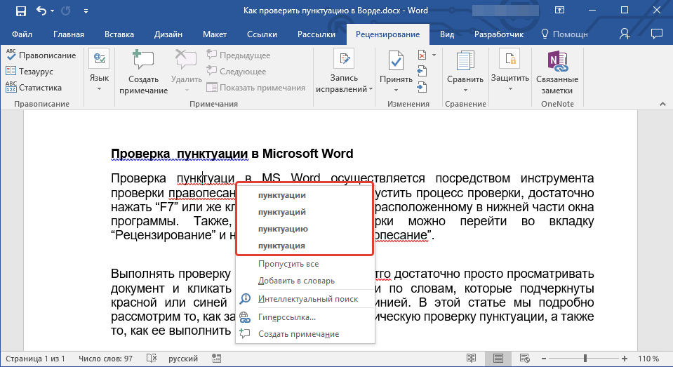 Пример: Если вы вместо слова “Правописание” написали “Правопесание”, программа предложит следующие варианты исправлений: “Правописание”, “Правописании”, “Правописания” и другие его формы.
