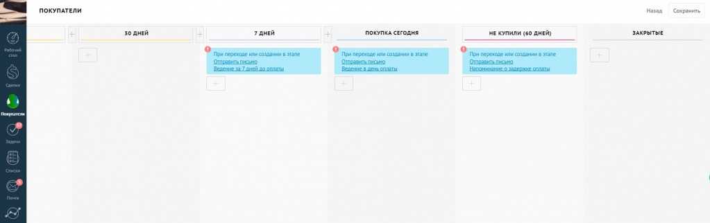 - Управление продажами: можно узнать, на каком этапе воронки продаж находится сделка.