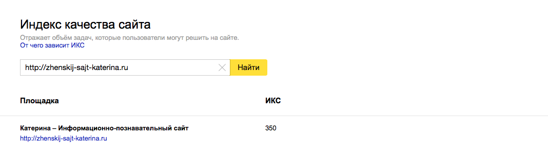 - зайти на страницу специального сервиса Яндекс и ввести адрес проверяемого сайта. Например, можно узнать ИКС у сайта Google в России.