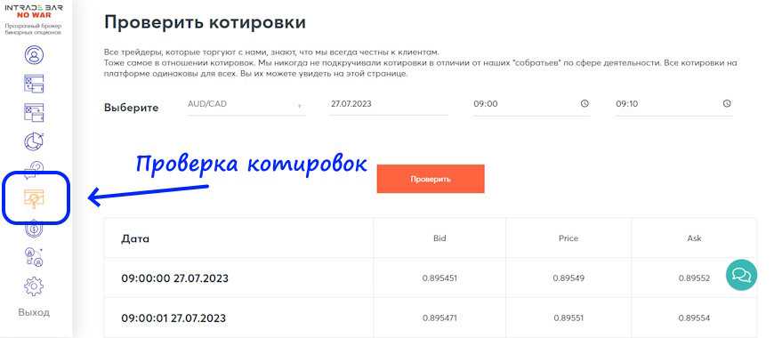 Проверка котировок на Intrade Bar