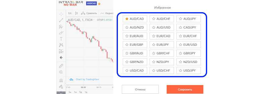 Для себя на первое место я выбрал брокера Intrade Bar. Выбор активов не широкий в отличие от других известных брокеров (Pocket Option, Binarium, Quotex). На данный момент представлены только валютные пары.