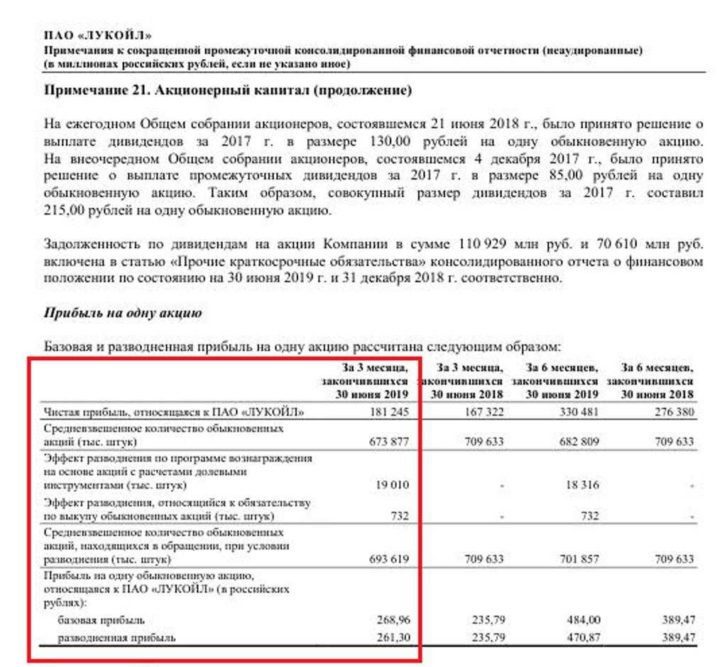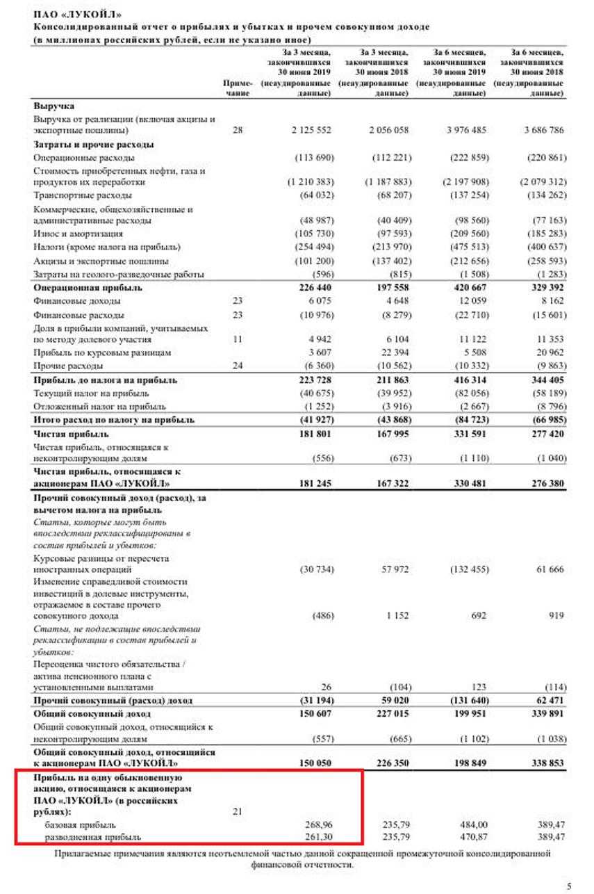 Для примера я взял отчетность, составленную по международным стандартам для компании «Лукойл» по итогам результатов деятельности за первое полугодие 2019 года.