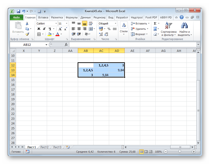 - Добавляем указанные элементы в общий кластер. Формируем новую матрицу по тому же принципу, что и в предыдущий раз. То есть, ищем самые меньшие значения. Таким образом мы видим, что нашу совокупность данных можно разбить на два кластера. В первом кластере находятся наиболее близкие между собой элементы – 1,2,4,5. Во втором кластере в нашем случае представлен только один элемент — 3. Он находится сравнительно в отдалении от других объектов. Расстояние между кластерами составляет 9,84.