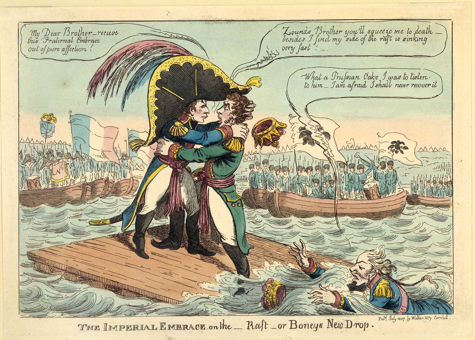«Императорские объятия». Английская карикатура на Тильзитский мир 1807 года, одним из условий которого было присоединение России к Континентальной блокаде