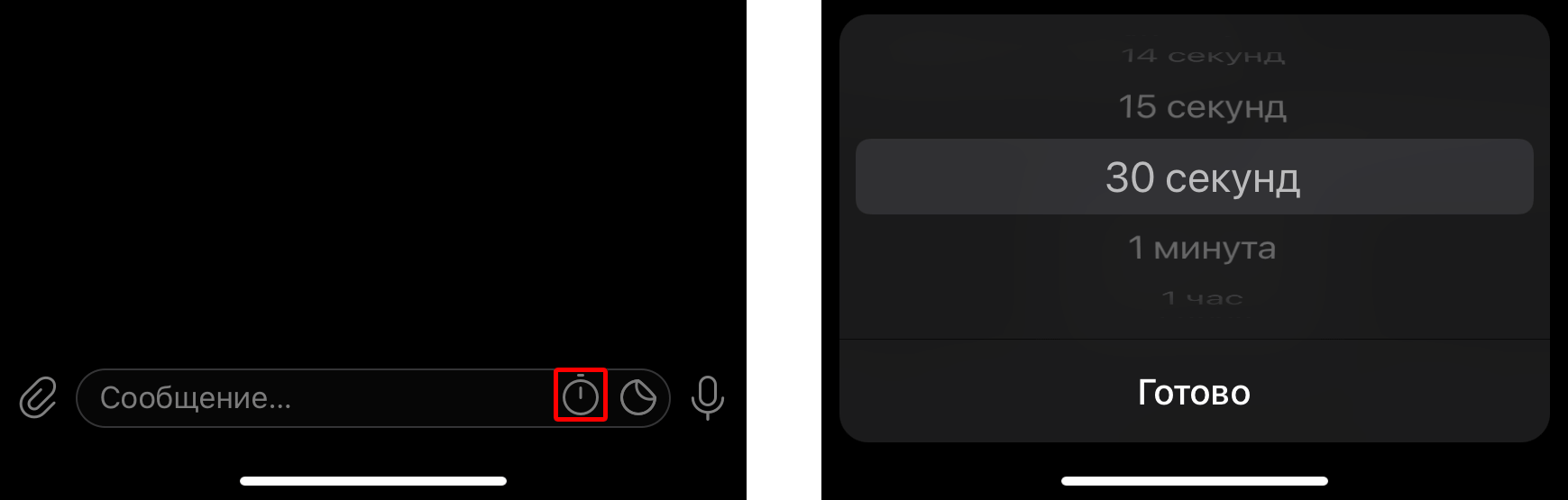Это работает так: собеседник получает от вас послание, читает его, и через заданное вами время сообщение исчезает. Настроить эту функцию можно прямо в диалоге.