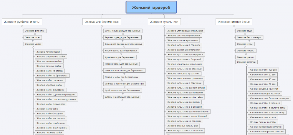 3. Большая глубина вложенности страниц. Возможность перехода на любую страницу или раздел сайта через 3 клика – это отличный показатель. Разделение на категории не должно быть слишком детализированным, так навигационное меню будет перегружено. При настройке фильтрации старайтесь не засорять сайт кучей подкатегорий.