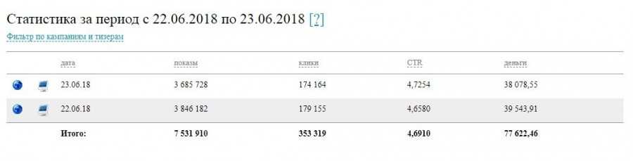 Вот, к примеру, одна из моих рекламных кампаний в данной тизерной сети >>> СМОТРЕТЬ СКРИН