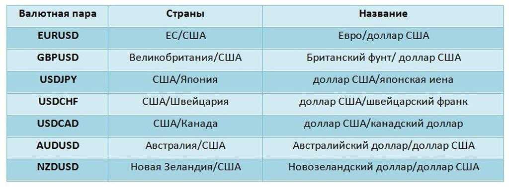 Это самая маленькая, но самая значимая группа. Мажорные пары или просто мажоры обладают самыми высокими и значимыми показателями по ликвидности, частоте использования, общим объемам торгов и оборотом на мировой валютной арене.