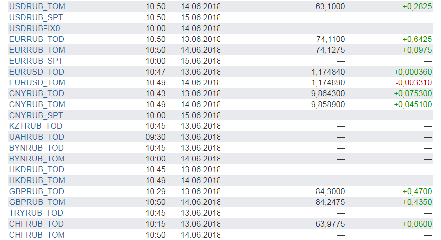 Список валютных фьючерсов торгуемых на Московской бирже