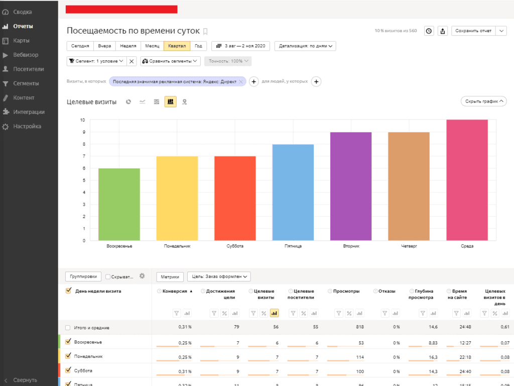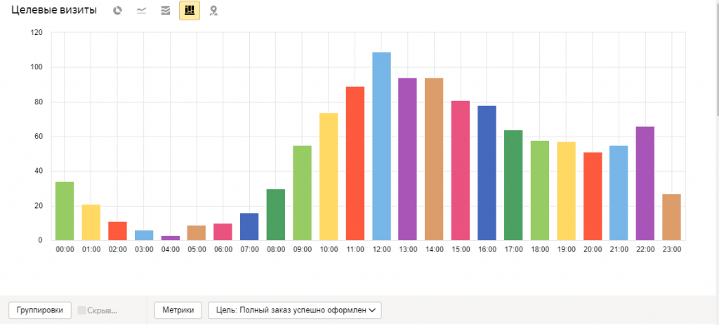 Однако, чтобы понять, в какой период повышается конверсия или количество заявок значительно выше потребуется выбрать нужную цель.