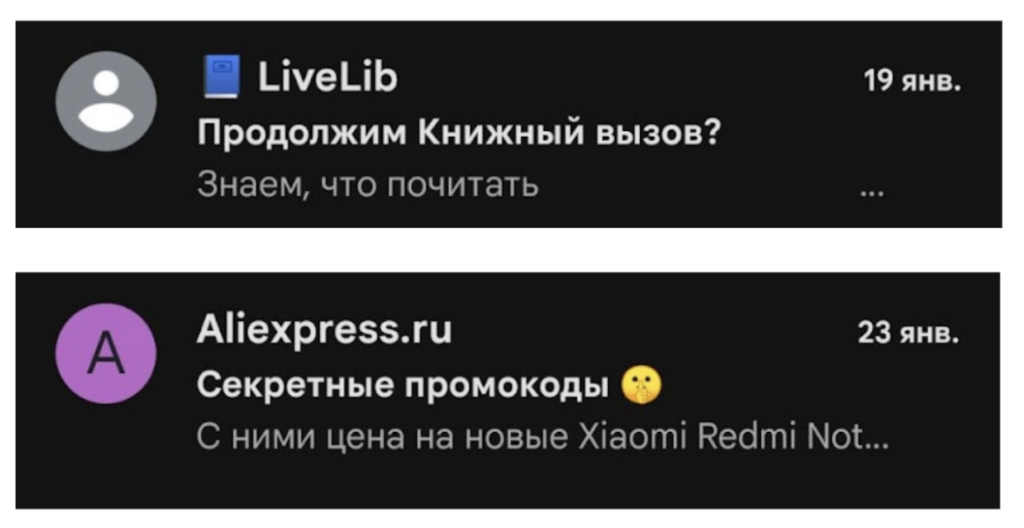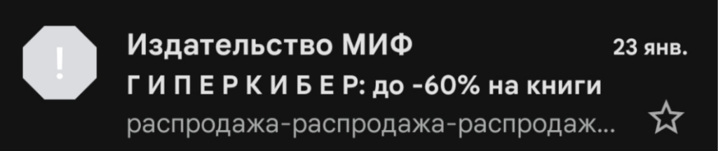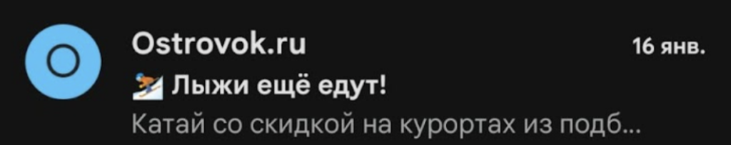 В рассылках в роли заголовка выступает тема письма. До открытия письма пользователь видит максимум 50 символов текста, со смартфона — около 30 символов. Поэтому тему лучше формулировать кратко, а для подробностей использовать поясняющий абзац — прехедер.