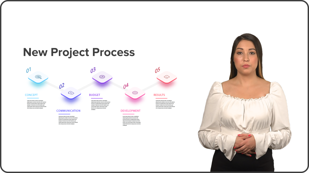 Так как обучение нейросети и создание цифрового аватара происходит в результате оценки видеоматериала, то ответ здесь прост — записать видео. Нужно снять около 2-4 часов видеозаписи с реальным человеком в кадре (согласитесь, это в разы меньше по времени, чем сделать, например, видеокурс лекций с живым спикером). Если заказчик хочет иметь аватара в нескольких вариациях одежды, то во время этих съемок модель (ведущий/ведущая) должна сняться в разных образах.