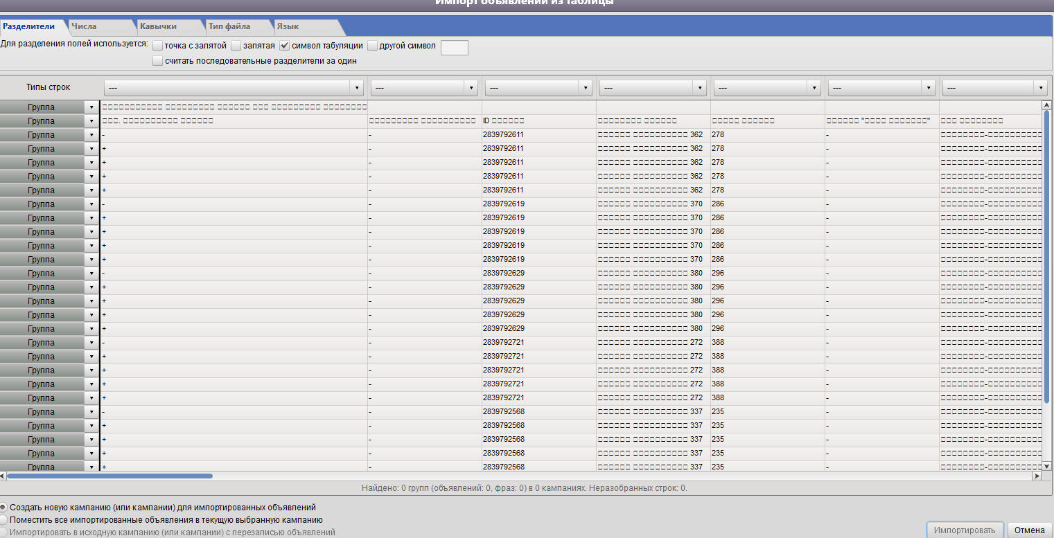 - Используя вместе с фильтром, Вы можете быстро найти объявления или фразы, которые относятся к разным группами или кампаниям.