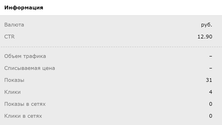 - Охват в сетях %. Показывает, какой процент охвата в РСЯ получат Ваши объявления. На данный параметр имеет смысл смотреть, если Вы сделали рекламную кампанию в РСЯ Яндекса.