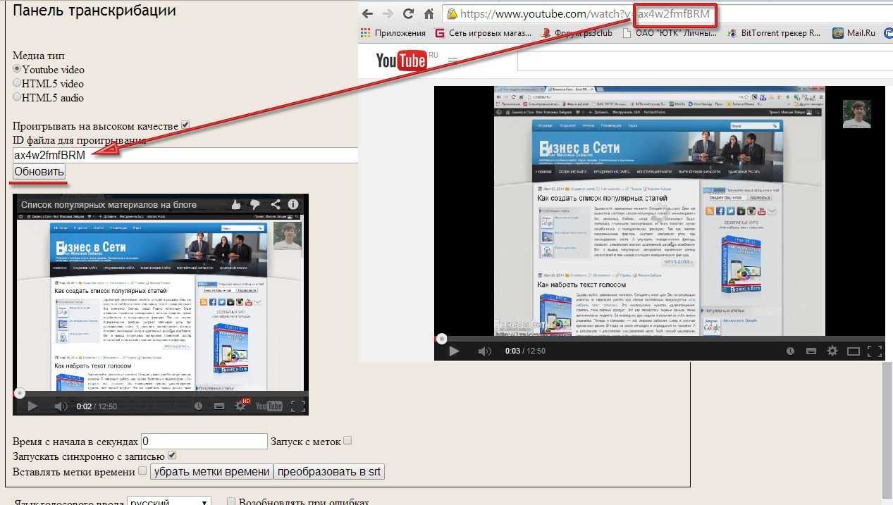 Для начала, рассмотрим пример открытия видео с YouTube. Для этого потребуется ID данного видео. Этот ID нужно вставить в поле «URL медиа файла для проигрывания» и нажать кнопку «Обновить».