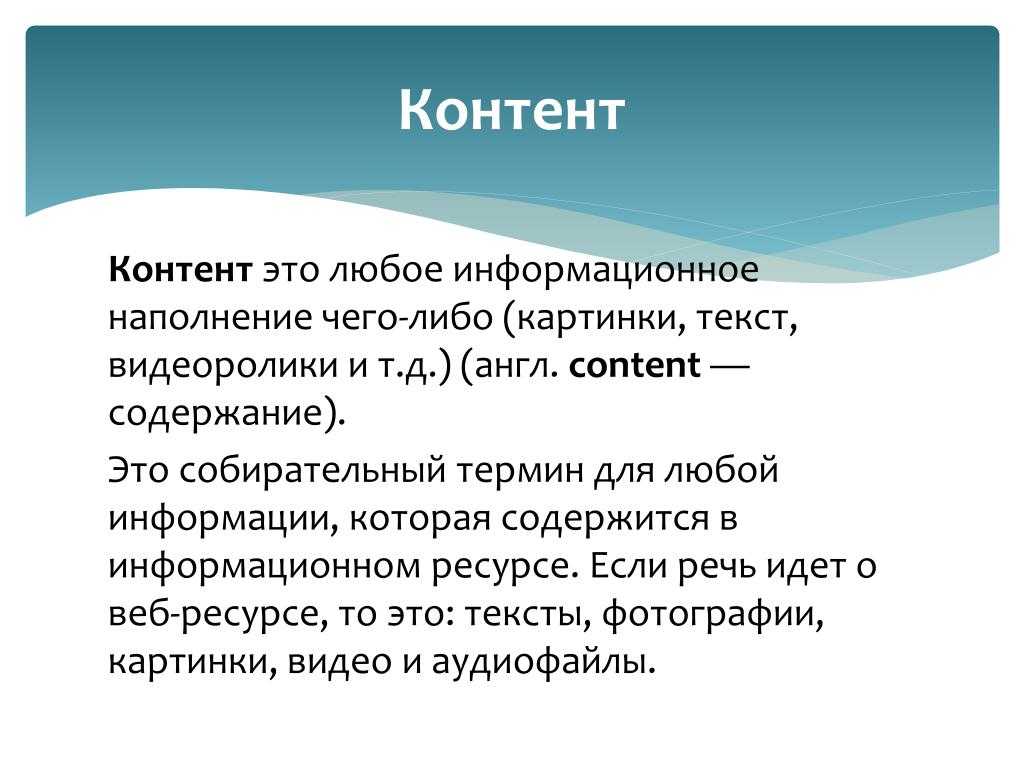 Это часто имеет вид «Содержимое — это любая информация, которая…».![]()