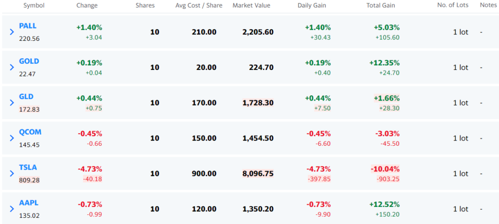 Finviz.com — еще один аналитический сайт с большим набором инструментов для инвестора. В бесплатной версии учёт максимально базовый — просто вносится информация о количестве купленных акций и подводится общий итог на текущий момент. Elite-версия стоит 299$ в год.