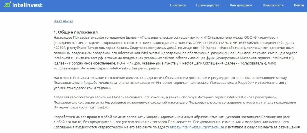 Тем не менее в пользовательском соглашении, размещённом на сайте указан другой адрес в качестве юридического: 420107, республика Татарстан, город Казань, Спартаковская улица, дом 2, помещение 119, нигде не отображаемый. При проверке выяснилось, что по данному адресу находится торговый центр, но компании Интелинвест там нет. Непонятная ситуация получается и с датой регистрации, так как она опровергает 9 летний опыт фирмы, учитывая отсутствие информации об истории развития и команде профессионалов.