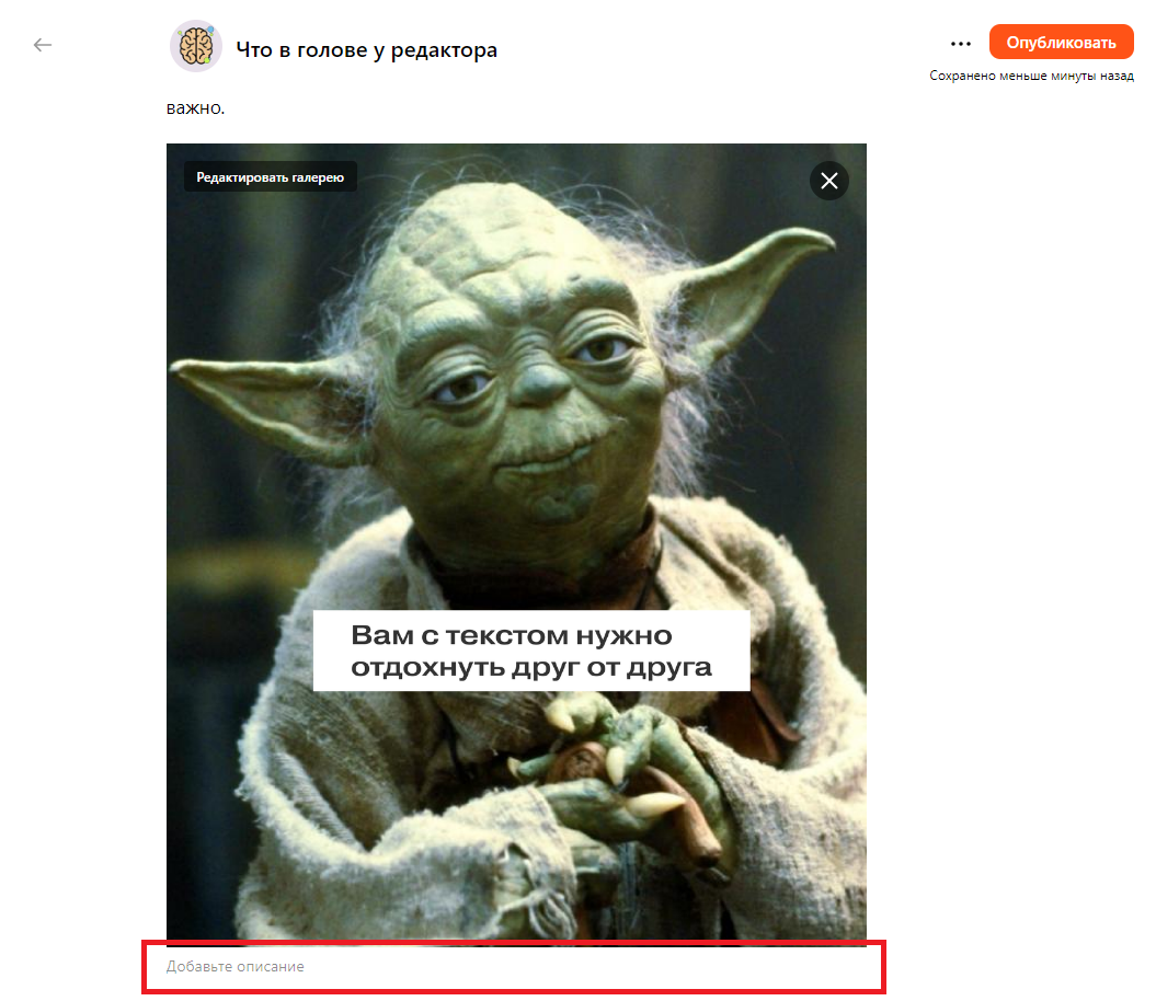 Шаг 5. При необходимости добавьте описание к картинке в специальном поле. Оно располагается сразу под изображением.