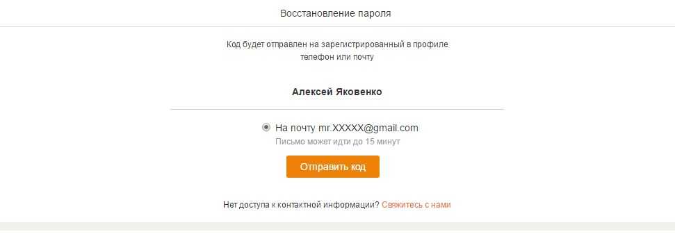 Как вы видите, перед нами открывается вариант восстановления доступа к аккаунту через мобильный телефон. Жмете на «Отправить код» и действуете, как было описано выше, когда речь шла про восстановление пароля с помощью телефона.