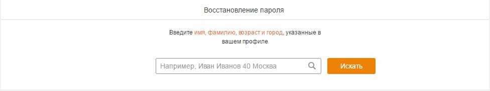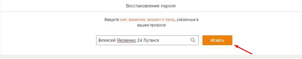 Для восстановления информации для входа данным способом вам нужно ввести свои личные данные в форму ввода информации (город, возраст, фамилия и имя). Затем нажимаете на «Искать»: