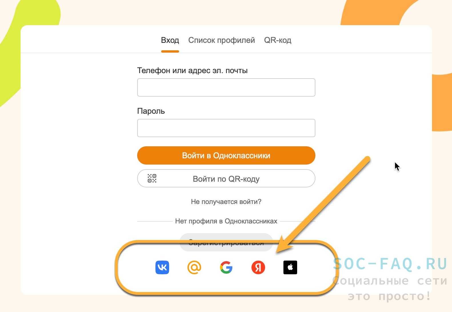 Вернуть доступ с помощью ID является самым легким способом. Если вы привязали к Одноклассникам свой VK ID, Яндекс ID, Google ID, Apple ID, то у Вас не будет никаких проблем. На главной странице ОК снизу находятся иконки всех этих сервисов.
