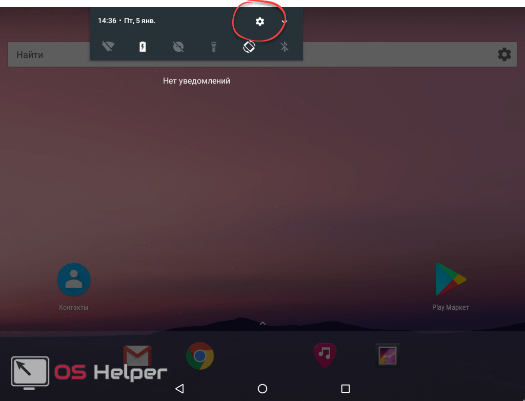 - Сдвигаем строку уведомлений или, как ее еще называют, «шторку» вниз и тапаем по иконке настроек.