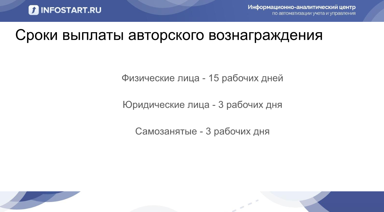 Сроки выплаты авторского вознаграждения тоже меняются: