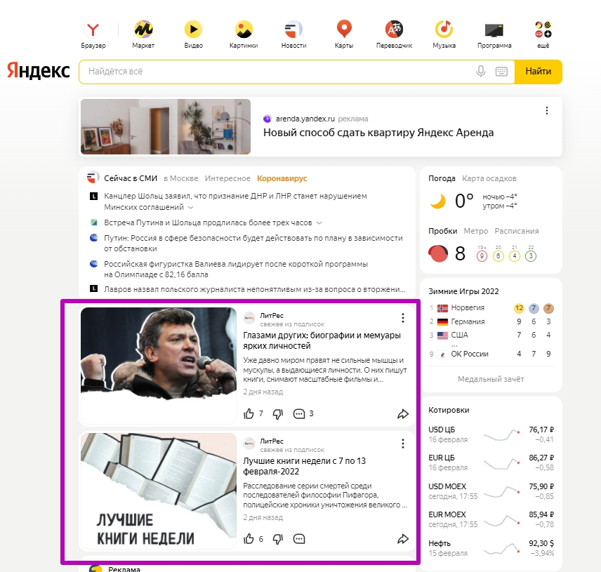 Источник – любой сторонний сайт, попадающий в рекомендации Яндекса.
