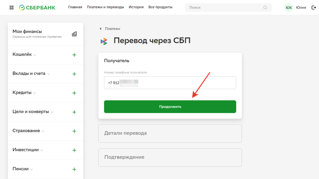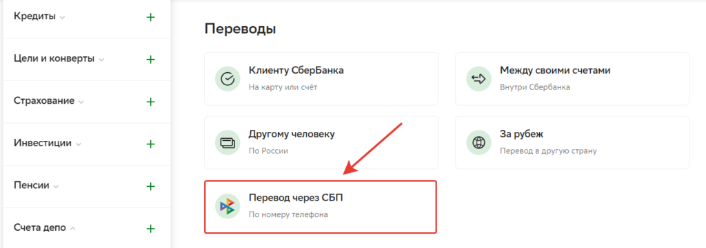 Далее рассмотрим, как провести перевод по СБП в Сбербанке через приложение и на сайте.