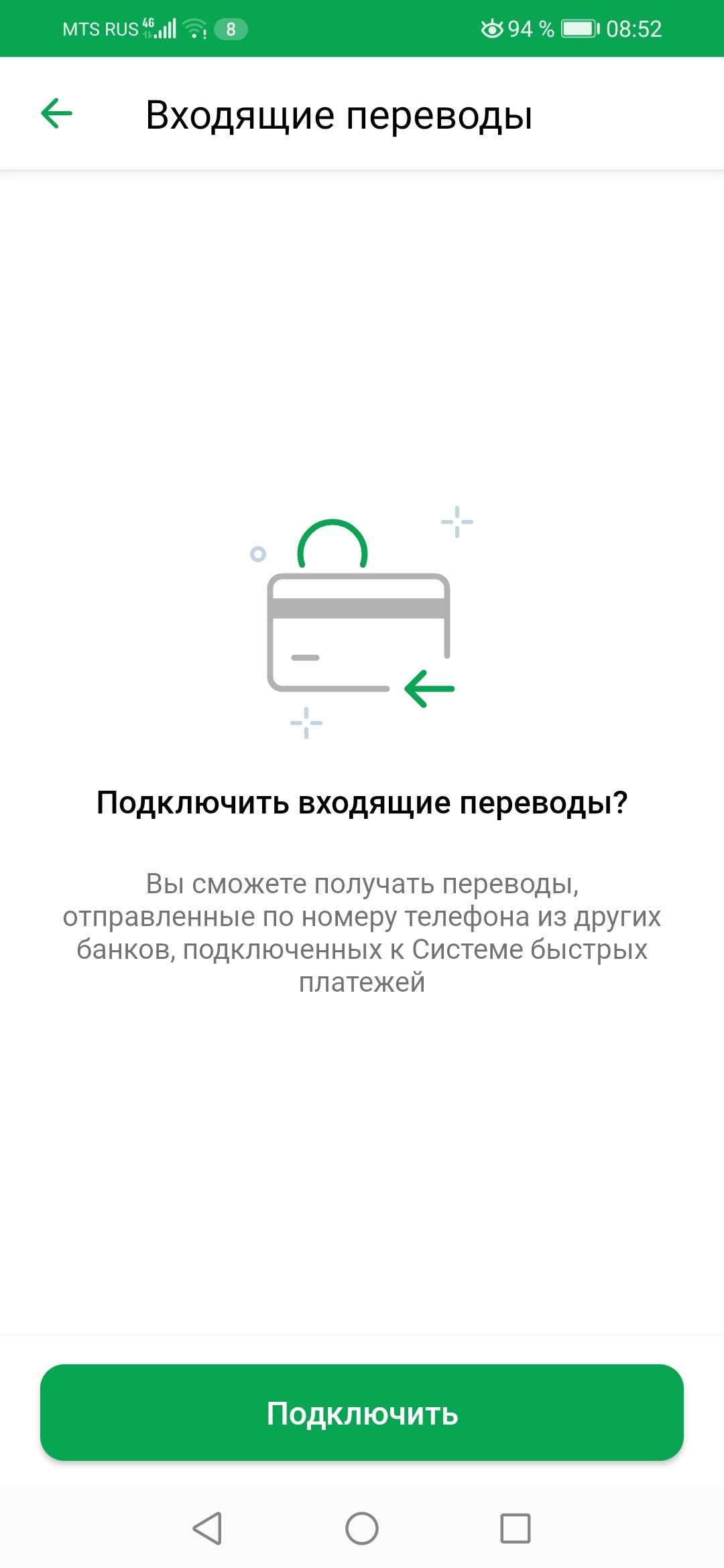 И так подключение входящих переводов нужно нам для того — что-бы иметь возможность приема переводов которые были отправлены на ваш номер телефона по системе быстрых платежей от других пользователей которые обслуживаются в другом банке.