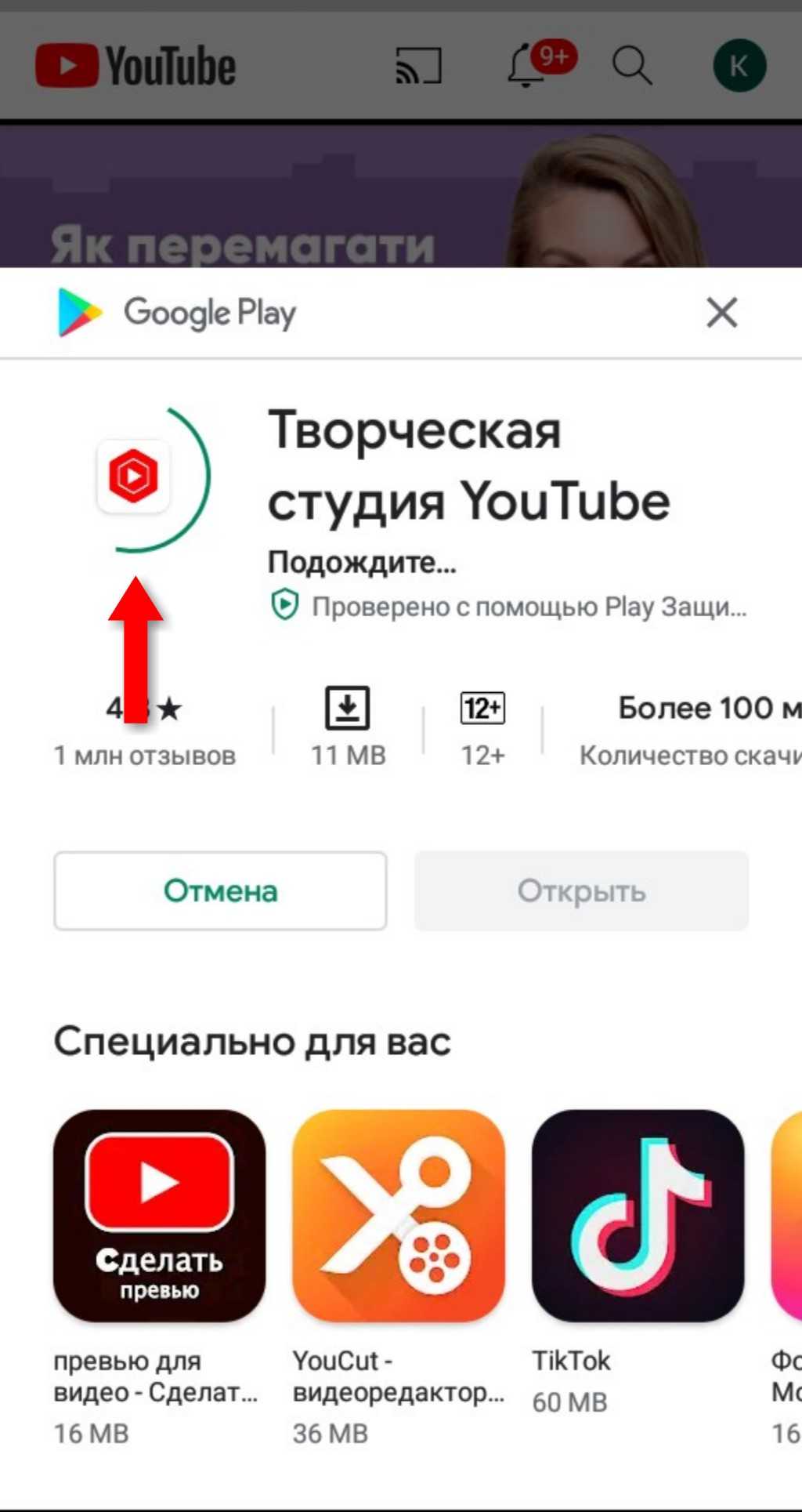 Оба способа идентичны и подходят для любых гаджетов. Нажмите на строку «Творческая студия YouTube» в меню аккаунта или войдите в мобильный магазин. Загрузите редактор на устройство.