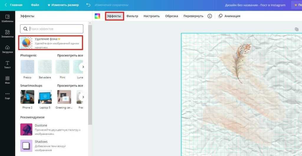 Как убрать фон в Canva