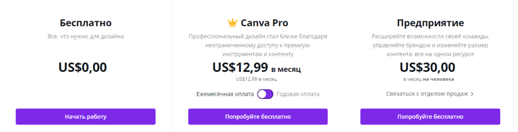 Актуальные тарифы Canva