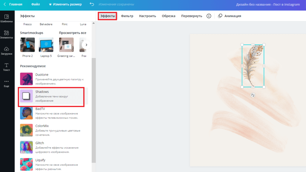 Как сделать тень в Canva