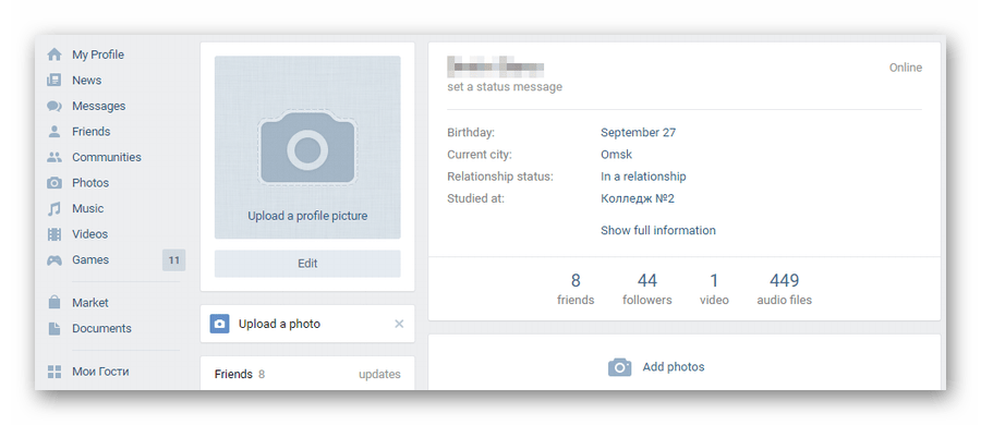 Настройки профиля помогут указать информацию о семейном положение, добавить родной город.